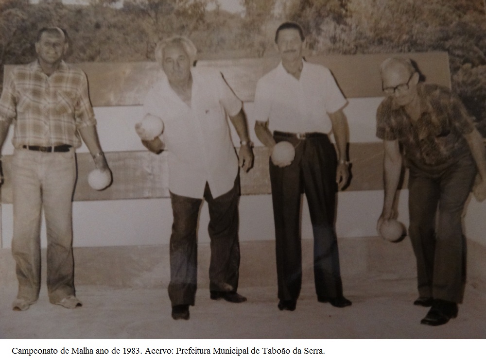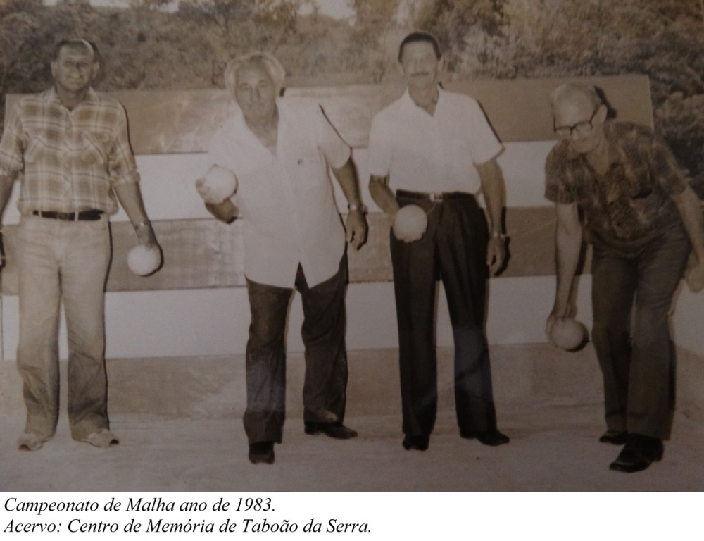 “Fui jogador de malha e bocha, representei o município de Taboão da Serra em jogos regionais a partir de 1966. O Clube de malhas foi fundado em 1963. Quando fui disputar os jogos regionais em Mogi das Cruzes, em 1973, foi muito bom, afinal fui vencedor representando o nosso município e, para brincar com os meus colegas que faziam muito barulho à noite, coloquei na porta do meu quarto: ‘Silêncio! Campeão descansando’. Eu tinha um parceiro muito bom que infelizmente já é falecido e se chamava Roberto de Souza. Nós dois arrebatávamos, não sobrava para ninguém. Eu também fui campeão de bocha, representando Taboão da Serra.” (4)