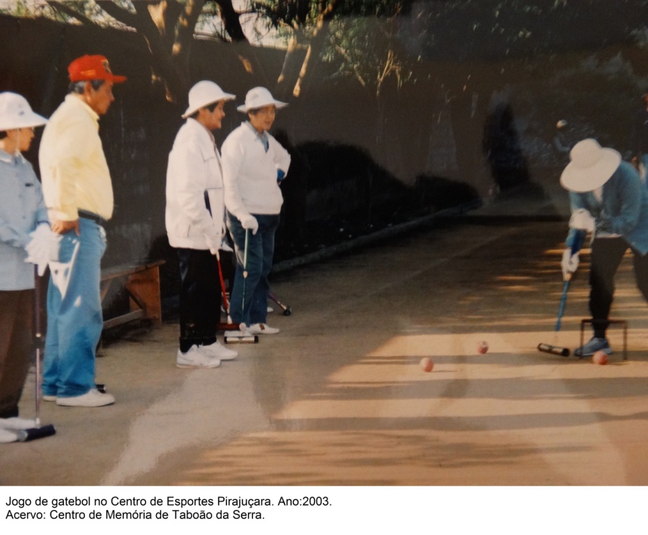 Em Taboão da Serra, o gatebol foi iniciativa da Sra. Chiyo Asanuma. É praticado por duas equipes com cinco integrantes cada. A meta é atingir um pino no centro do campo, fazendo a bola atravessar três Gates. Cada jogador tem a sua bola com o mesmo número do avental e deve lançá-la com um taco em forma de T. No Pirajuçara, o gatebol é coordenado pelo presidente Massaru Tori e o tesoureiro Shigueyuki Shibuya. Treinam diariamente das 7h às 11h e uma vez por mês participam de torneios regionais”. (1)
